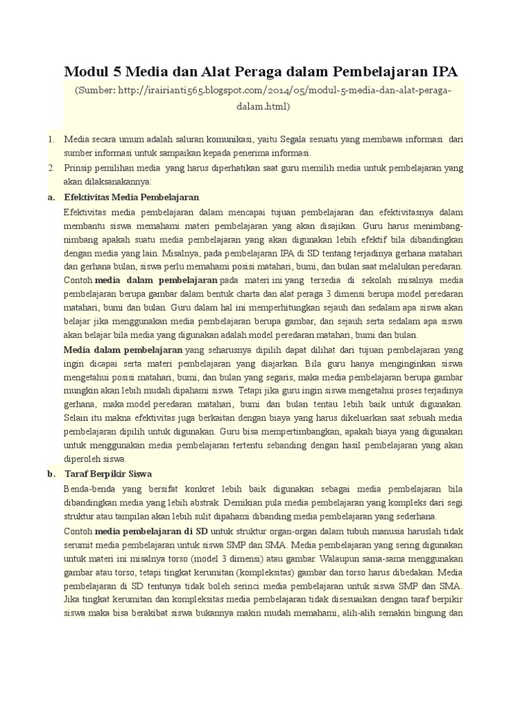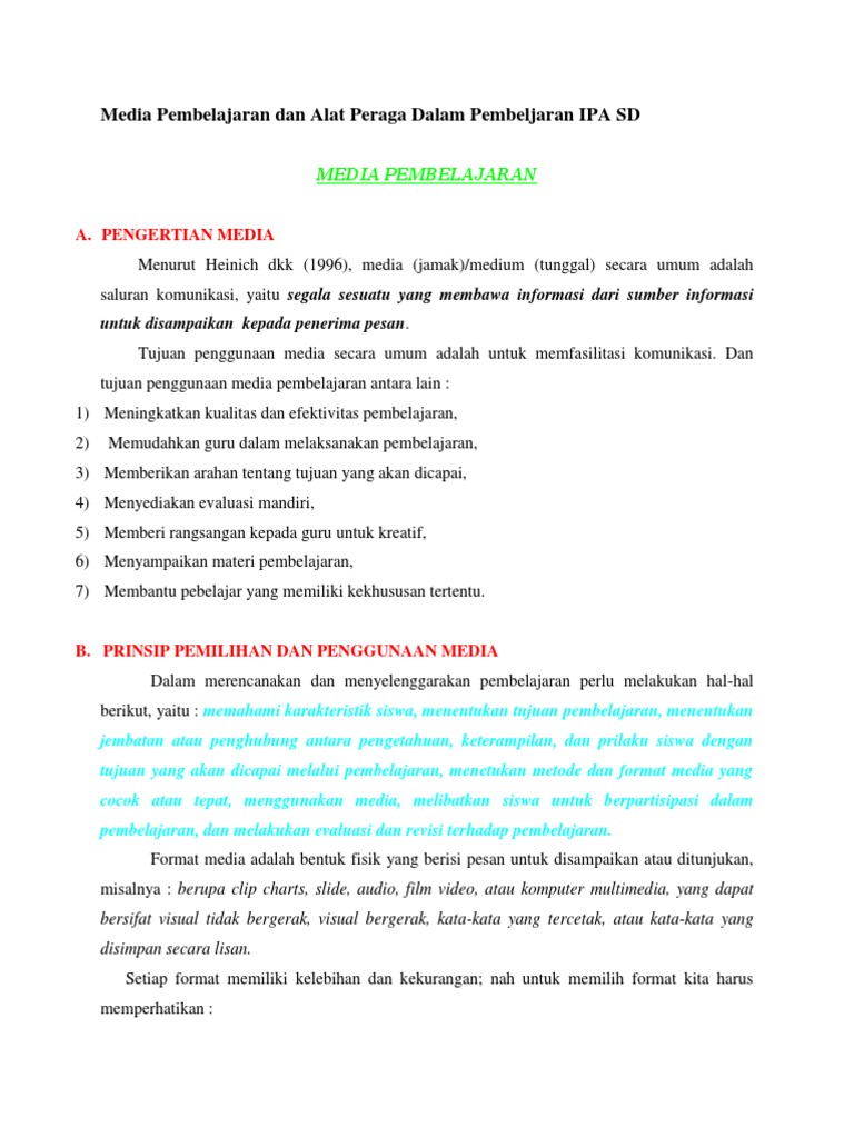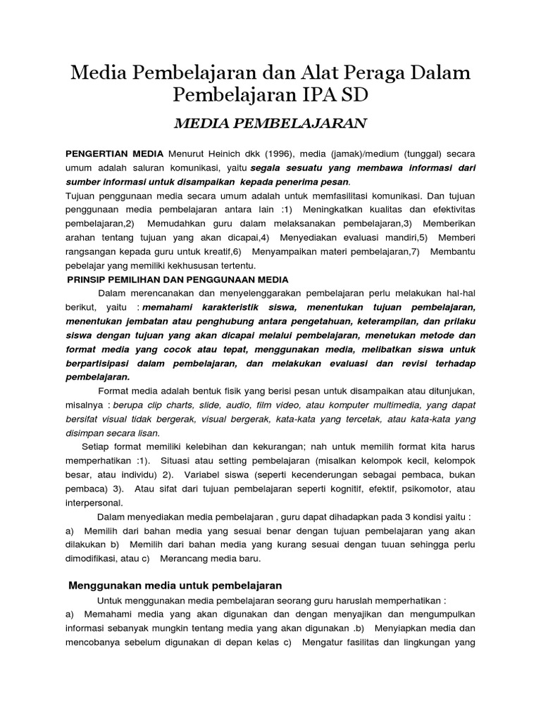 Media Pembelajaran Dan Alat Peraga Dalam Pembelajaran Ipa Sd