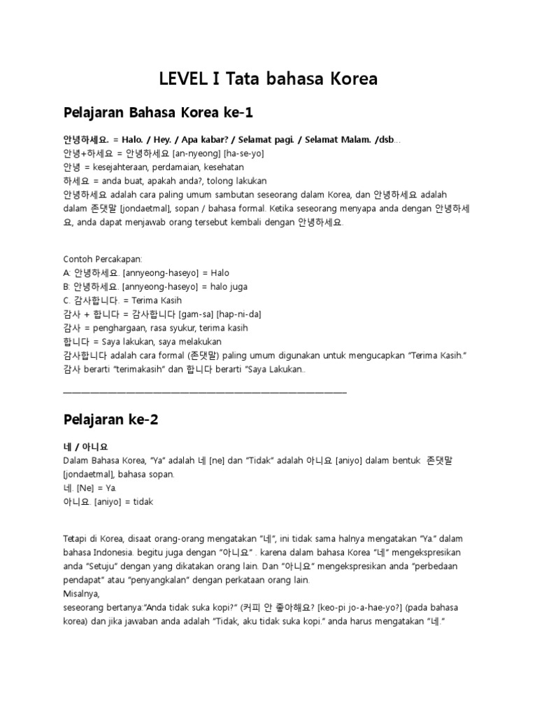 Level I Tata Bahasa Korea