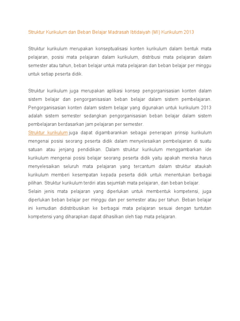 Mi Pondok Leungsir Struktur Kurikulum Dan Beban Belajar Madrasah Ibtidaiyah Mi Kurikulum 2013