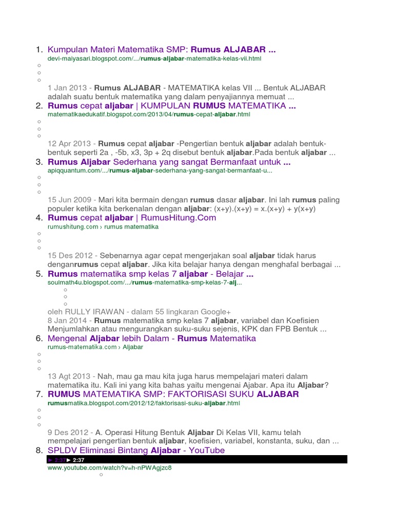 Pembagian Aljabar Kelas 7 Youtube