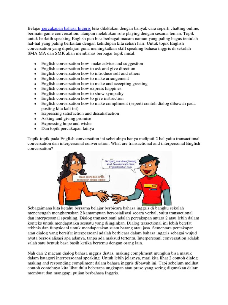 Belajar bahasa inggris percakapan sehari hari. Perckapakan bahasa inggris tentang aktivitas sehari hari. Contoh percakapan sehari hari bahasa inggris dan artinya terlengkap percakapan bahasa inggris atau convertation memang sangat diperlukan guna melatih keterampilan kita dalam menguasai gramer gramer bahasa inggris salah satunya dengan cara menghapal dan menterjemahakan bahasa inggris indonesia berikut ini sudah kami sajikan beberapa contoh percakapan bahasa inggris untuk tugas kampus dan. Contoh percakapan 2 orang dalam bahasa inggris aktivitas sehari hari dan arti.