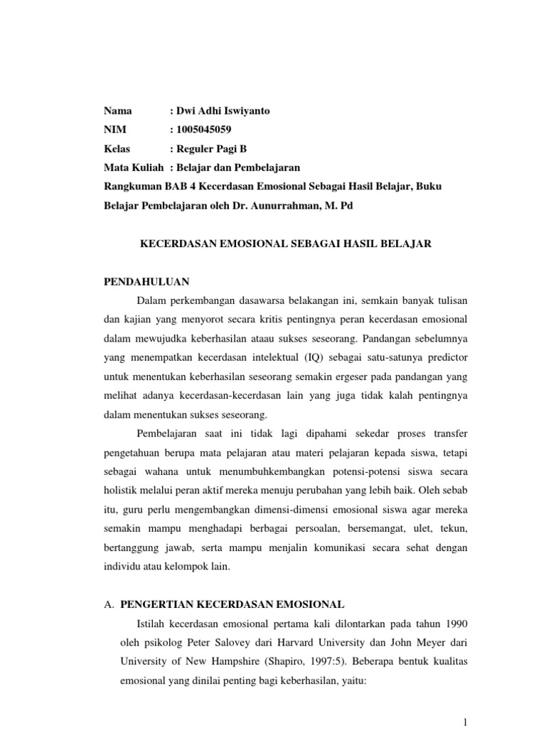 Motivasi Dan Kecerdasan Emosional Dan Implikasinya Dalam Pembelajaran Jurnal Pendidikan Rokania