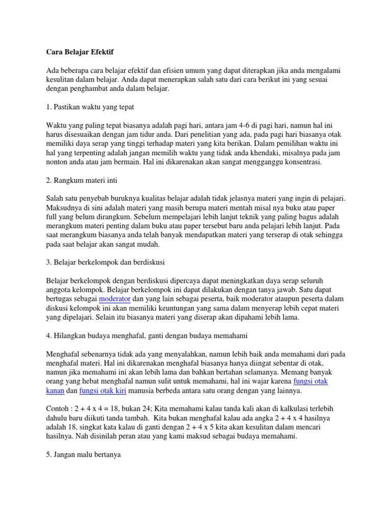 Tips Belajar Efektif Dan Efisien Cocok Nih Buat Kamu Yang Malas Malasan Barisan Kataku