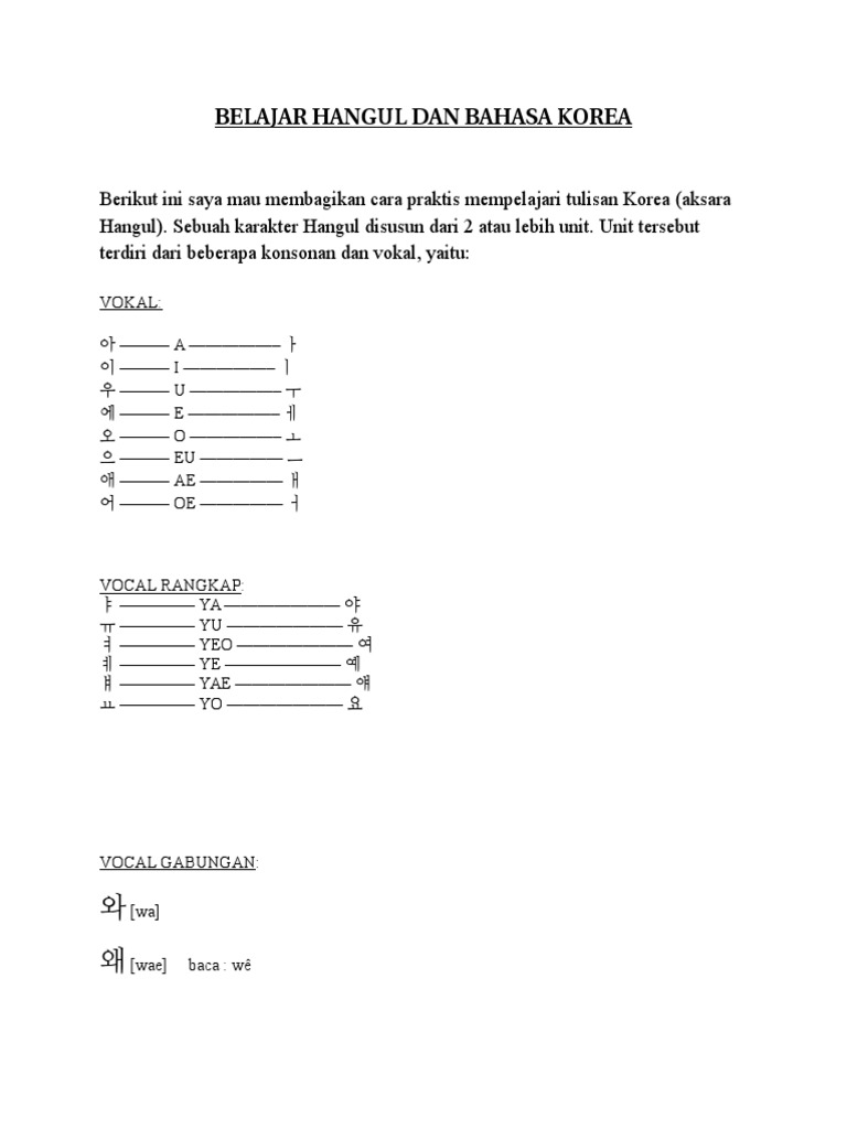 Hangul Belajar Kosakata Jenis Huruf Tulisan