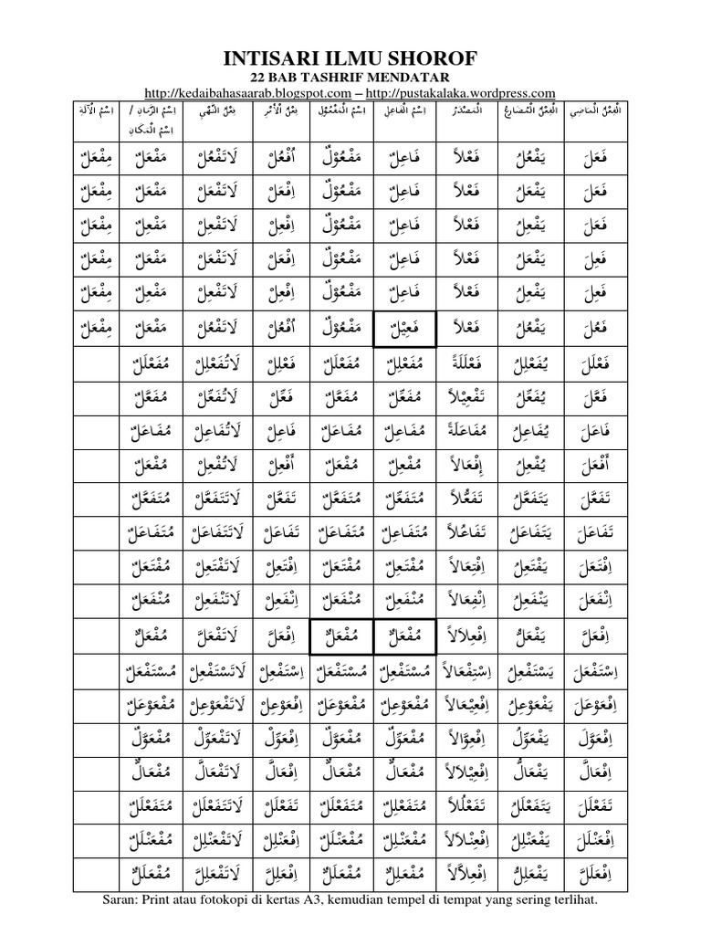 Belajar ilmu nahwu shorof tata bahasa arab online nahwu balaghah mujam sharaf kamus terjemah dll. Nsr nashara menolong dapat berubah menjadi nasr naashirun penolong dan mnsor manshuurun seorang yang ditolong. Ilmu shorof mempelajari perubahan kata dari fiil madhi menjadi mudhari mashdar amr isim fail maful alat zaman makan beserta aturan aturannya.
