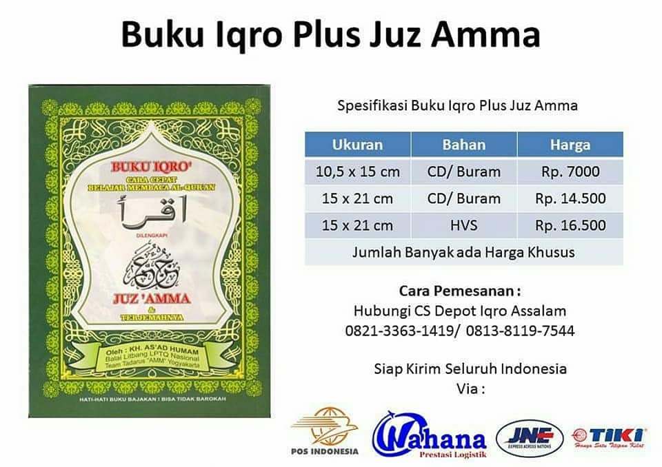 Depot Iqro As Salam Daftar Harga Dan Ukuran Buku Iqro Serta Kelengkapan Ngaji