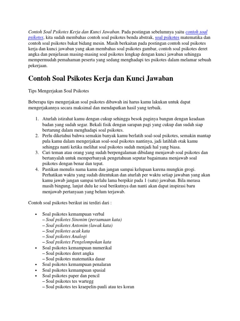 Contoh Soal Psikotes Kerja Dan Kunci Jawaban Psych 2301 Studocu