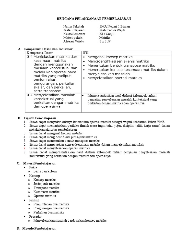 Lintasan Belajar Matriks Kd 3 3