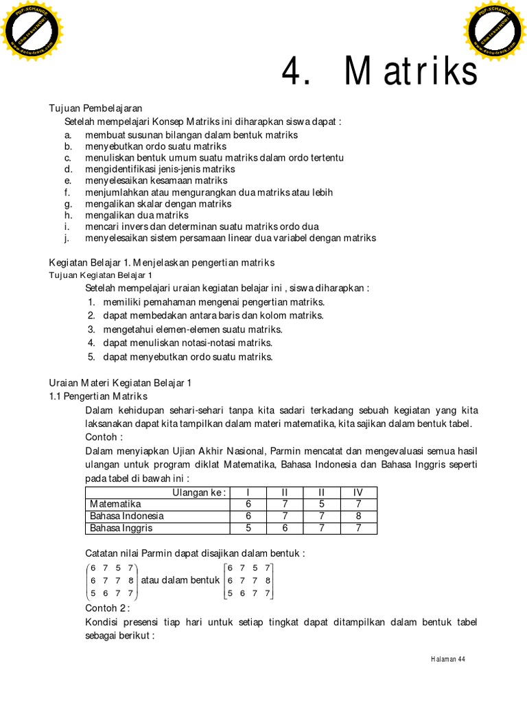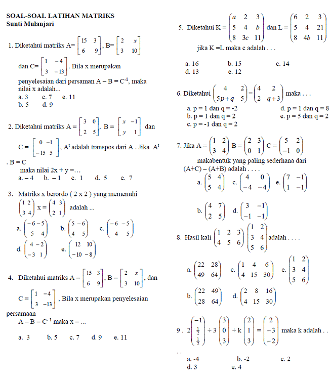 Penjumlahan Dan Pengurangan Dua Matriks Jika Matriks