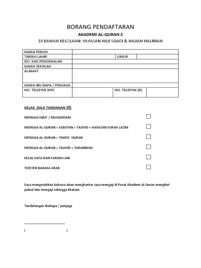 Borang Penyertaan Daurah