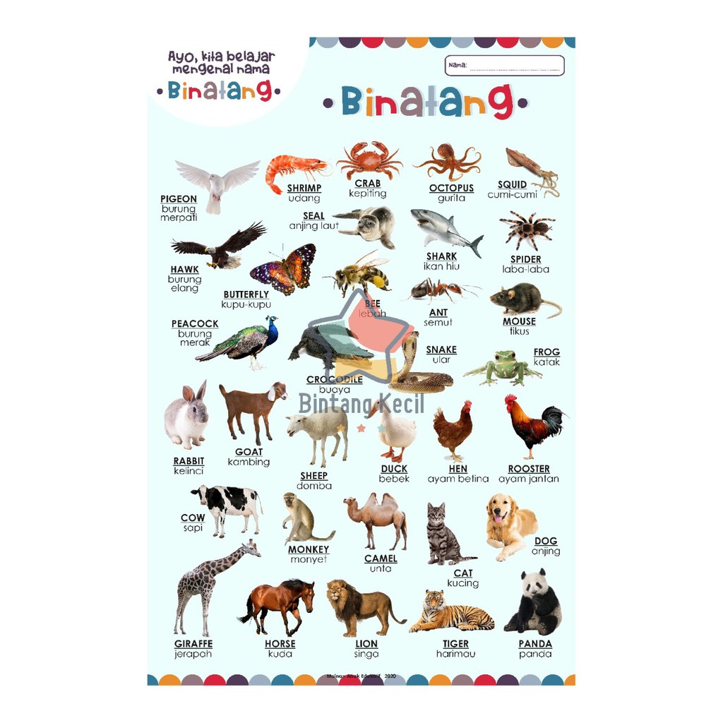 Jual Tipe 11 Poster Belajar Mengenal Hewan Binatang Untuk Anak Bayi Jakarta Pusat Baby Nina Lina Tokopedia