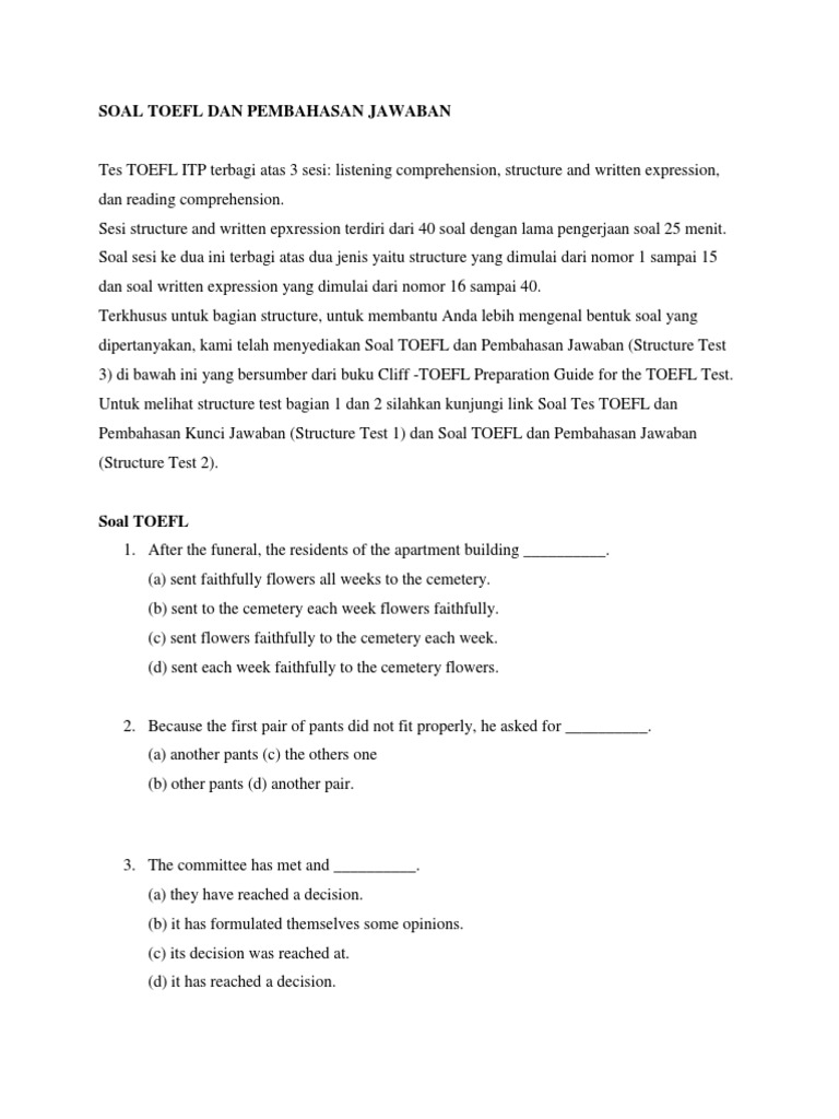 179120373 Soal Tes Toefl Dan Pembahasan Jawaban Docx