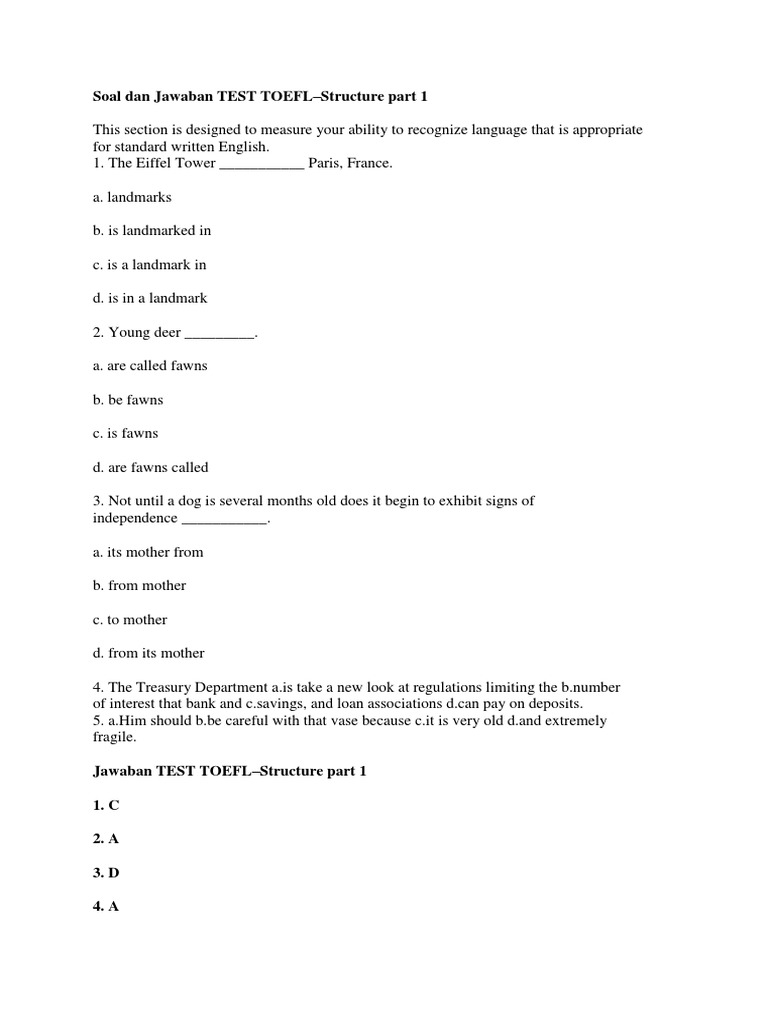 Contoh Soal Toefl Dan Pembahasannya Free Download Dan Latihan Soal Tes Toefl Online Gratis Englishiana