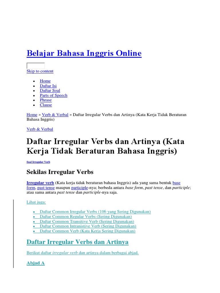 Verb 1 Verb 2 Verb3 Verb Ing Belajar Minum Makan Menyapu Memberi Memasak Bermain Berenang Duduk Brainly Co Id