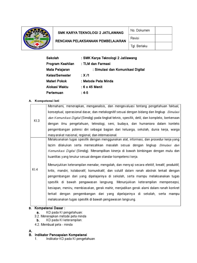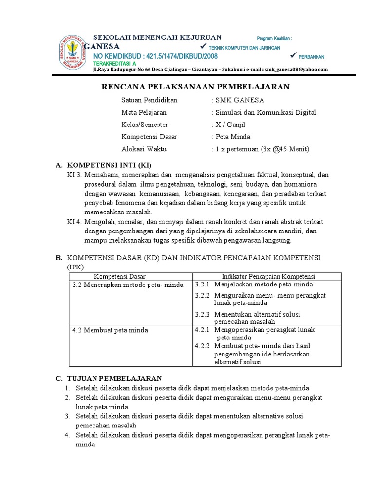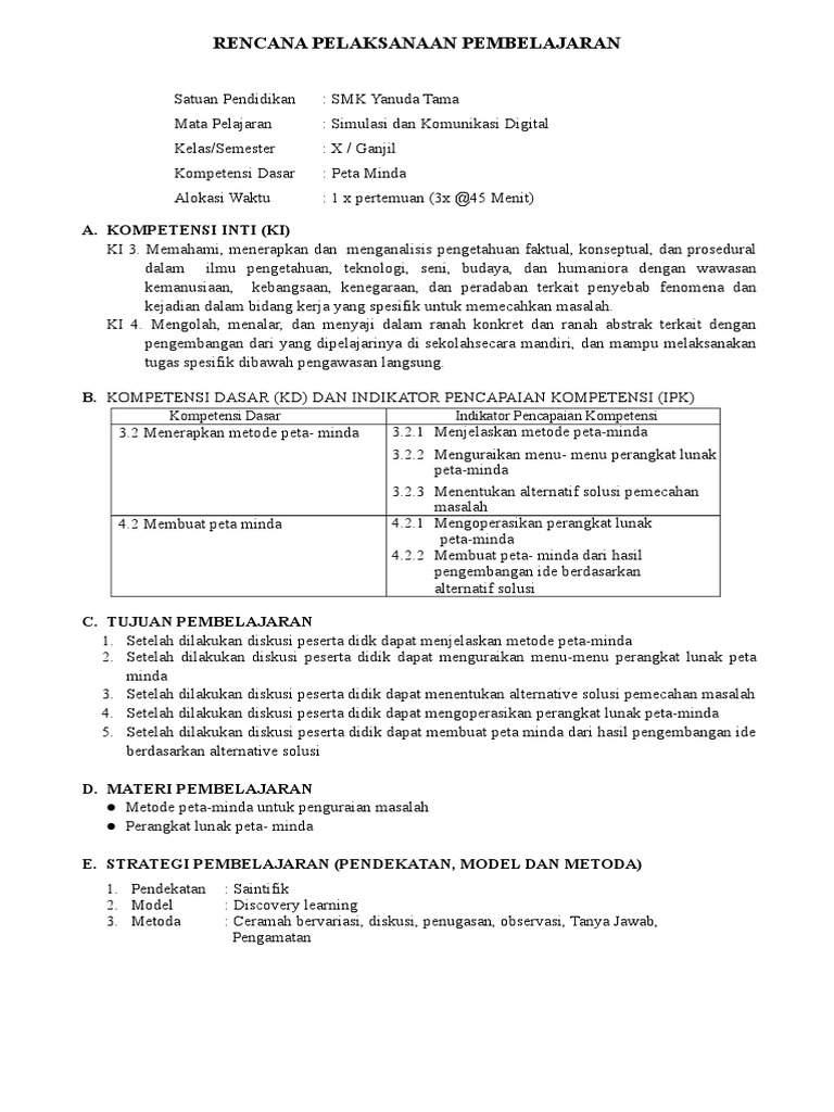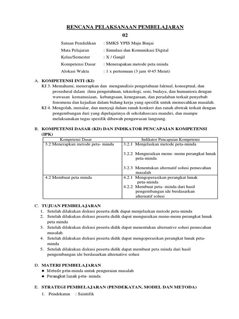 3 2 Rpp Peta Minda Zakki Doc Rencana Pelaksanaan Pembelajaran Satuan Pendidikan Smk Negeri 1 Kamal Mata Pelajaran Simulasi Dan Komunikasi Digital Course Hero
