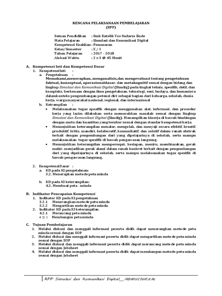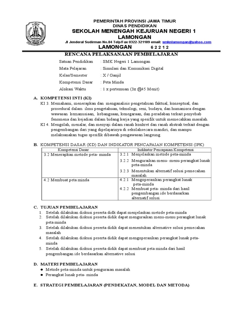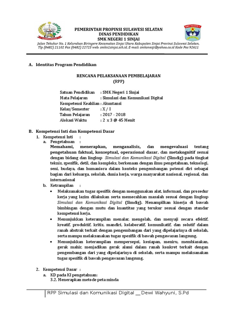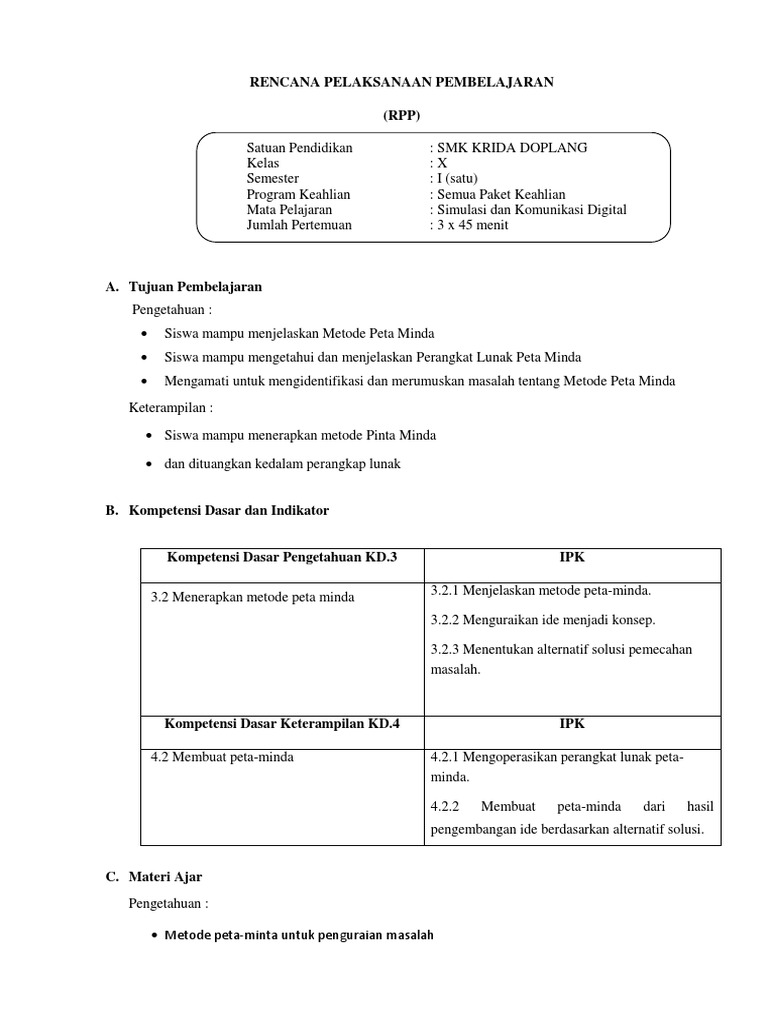 3 2 Rpp Peta Minda Zakki Doc Rencana Pelaksanaan Pembelajaran Satuan Pendidikan Smk Negeri 1 Kamal Mata Pelajaran Simulasi Dan Komunikasi Digital Course Hero
