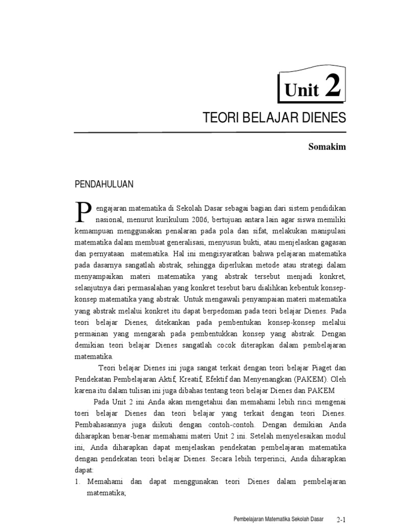 Penerapan Teori Belajar Dienes Dalam Pembelajaran Matematika Sekolah Dasar Penerapan Teori Belajar Dienes Dalam Pembelajaran Matematika Sekolah Dasar Makalahs Diajukan Untuk Memenuhi Tugas Olat Mata Academia Edu