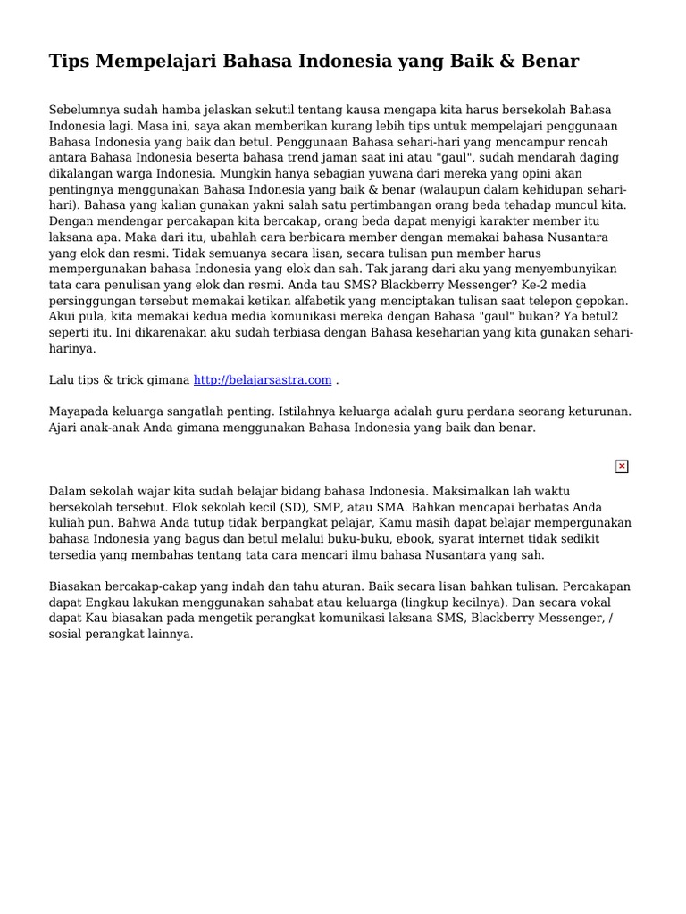 Belajar Bahasa Indonesia Dengan Baik Dan Benar Cara Mengajarku