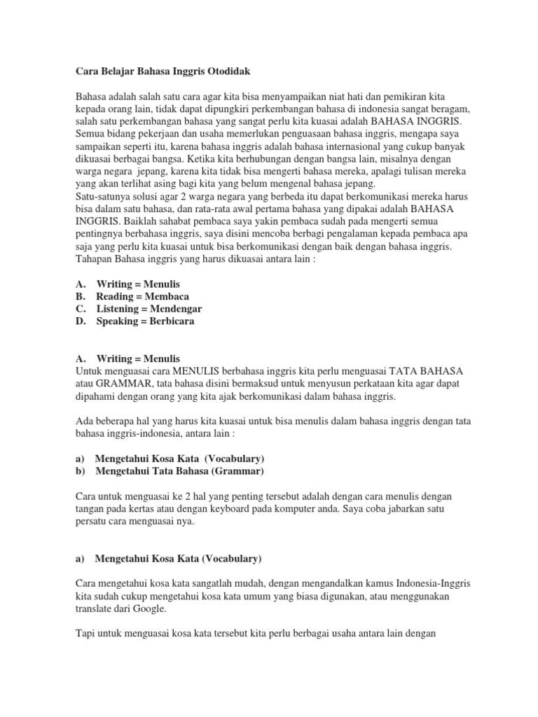 Terapkan Cara Belajar Bahasa Inggris Otodidak Dijamin Mahir Nusa Caraka