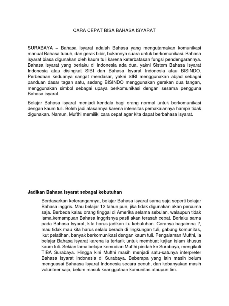 Bahasa isyarat menggunakan gerakan tangan dan jari sebagai ciri khasnya. 11 januari diperingati sebagai hari tuli nasional. Pusbisindo cara unik belajar bahasa isyarat reporter.