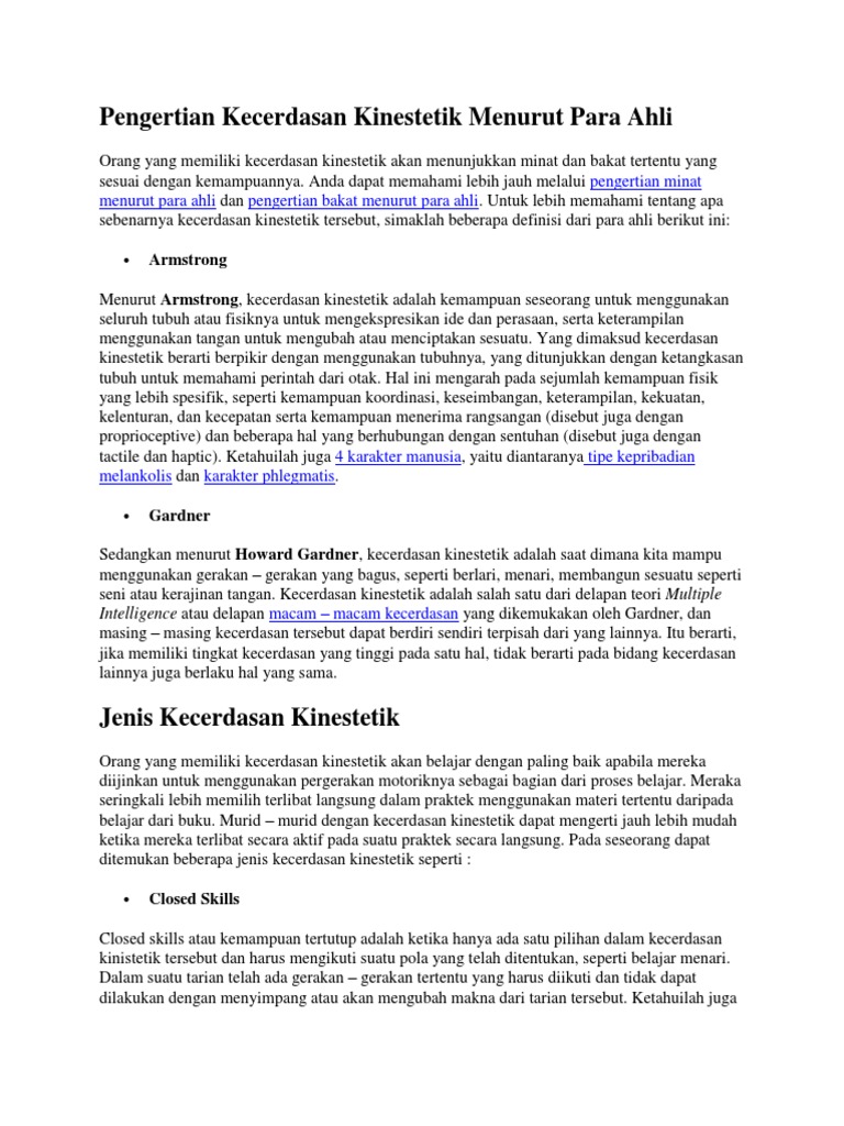 Blog Pendidikan Kecerdasan Kinestetik Menurut Ahli Pengertian Ciri