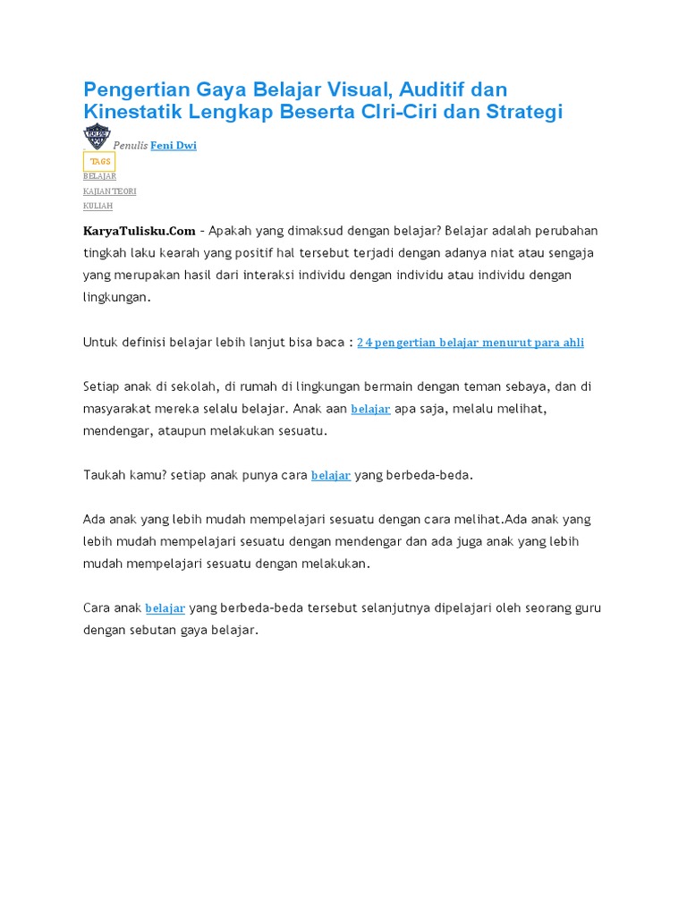 Gaya Belajar Siswa Pengertian Tife Dan Faktor Yang Mempengaruhi Pendidikan Kewarganegaraan Pendidikan Kewarganegaraan