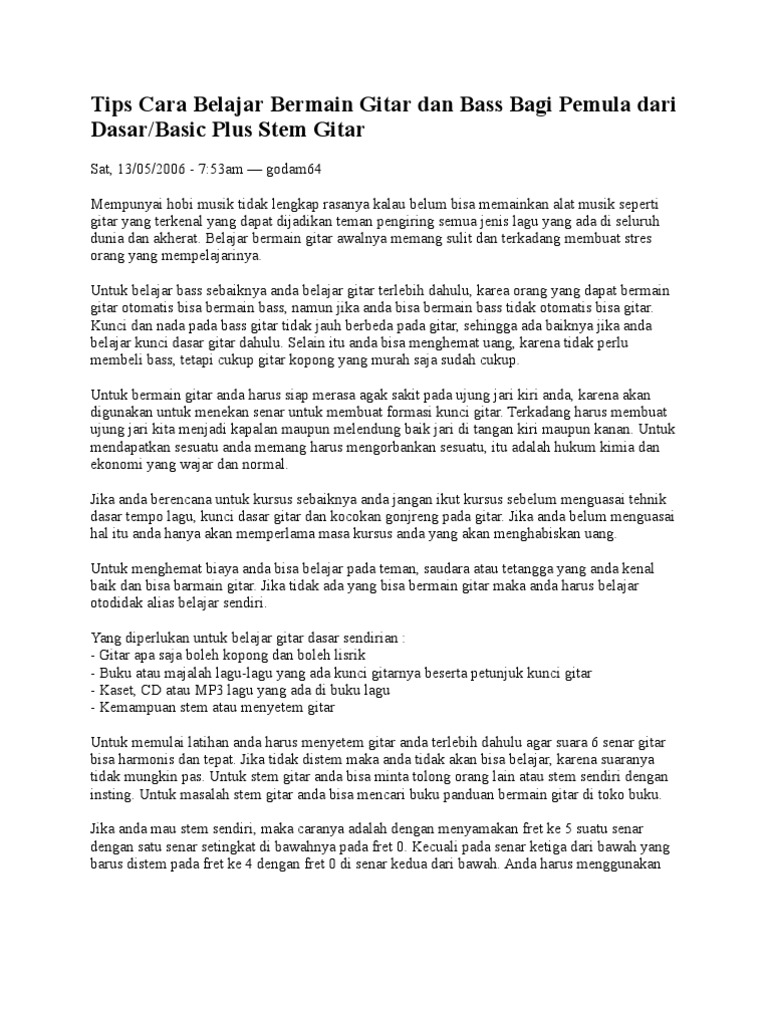 Cara Mudah Belajar Kunci Gitar Bagi Pemula