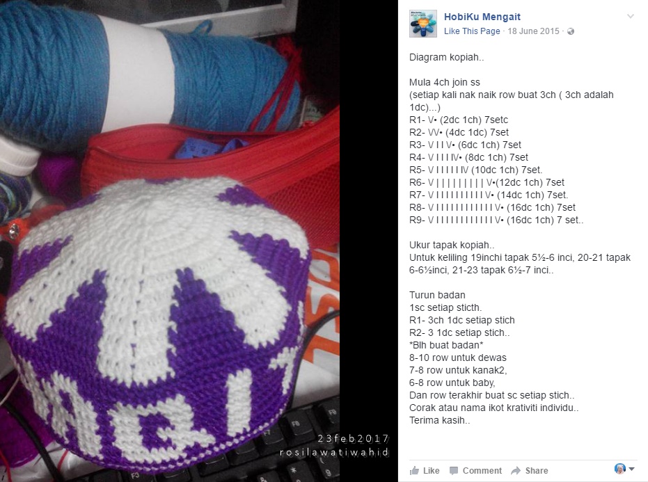 Cara Kait Kopiah Diagram Paten Dan Senarai Pengait Yang Mengambil Tempahan Kopiah Kait Seluruh Malaysia Pola Topi Topi Sulaman Syal Rajutan