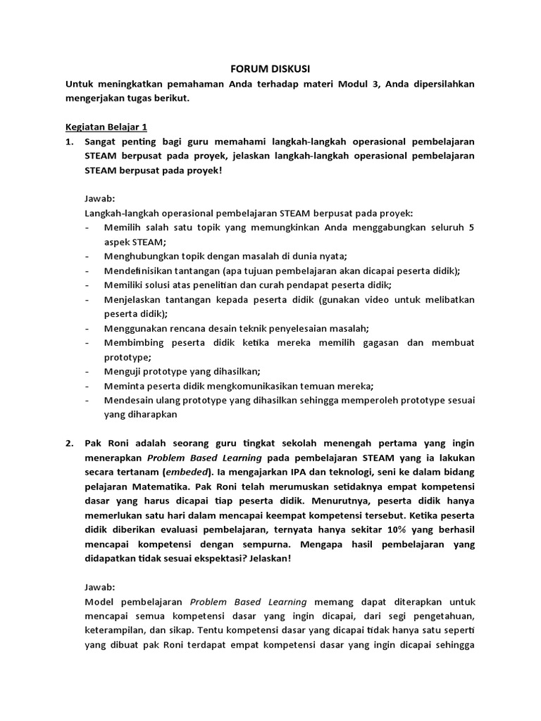 Soal Dan Kunci Jawaban Tugas Akhir Modul 3 Pembelajaran Inovatif Ppg Terbaru Arnaim Com