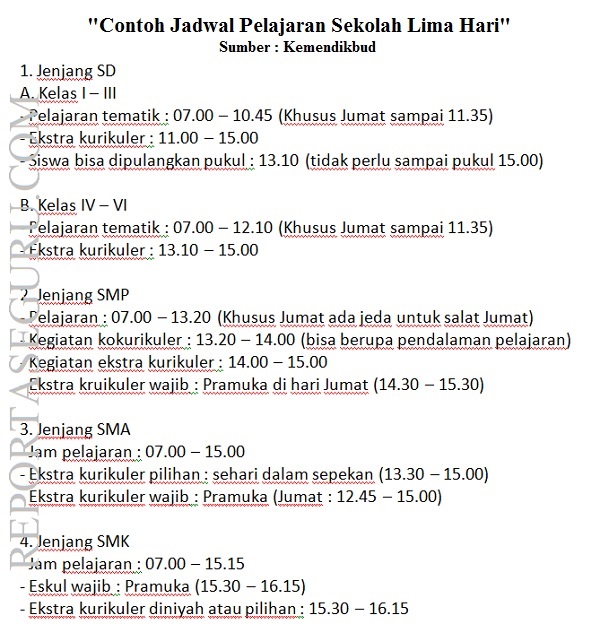 Contoh Jadwal Pelajaran Sekolah Lima Hari Lengkap Semua Jenjang Sd Smp Sma Dan Smk Reportase Guru