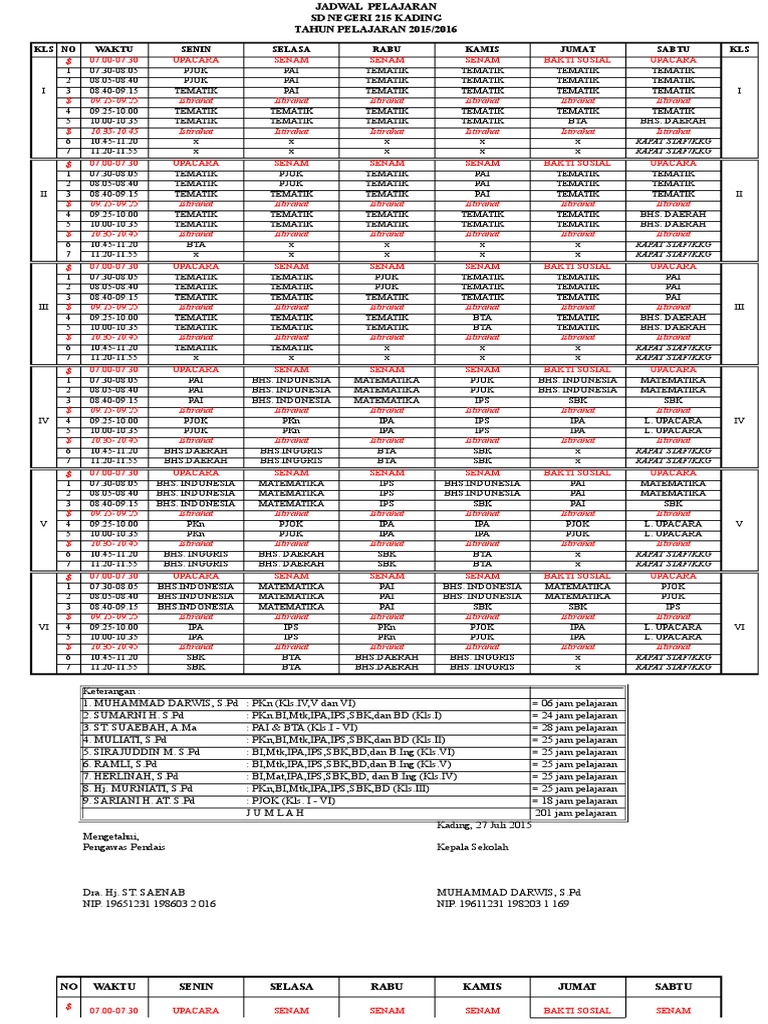 Jadwal Pelajaran Sd Tahun Pelajaran 2020 2021 Kelas 1 2 3 4 5 Dan 6 Informasi Pendidikan