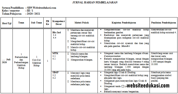 Contoh Format Jurnal Harian Kegiatan Belajar Mengajar Tahun Ajaran 2016 2017 Dengan Microsoft Excel Microsoft Excel Microsoft Office Word Office Word