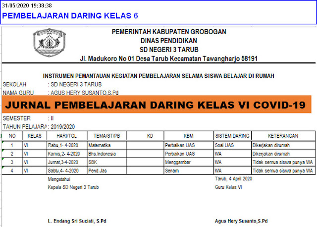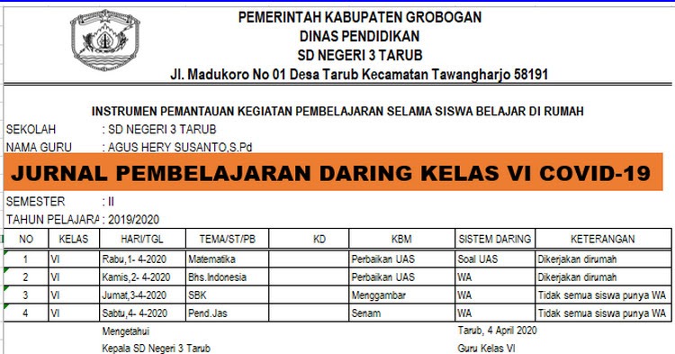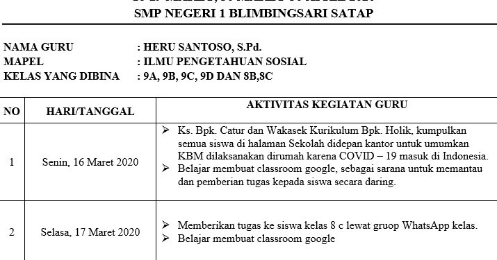 Contoh Laporan Guru Sd Dan Smp Selama Siswa Belajar Dirumah Secara Online Sdn Sobang 2