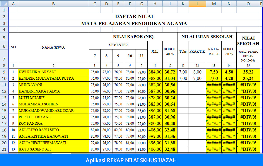 Download Aplikasi Rekap Nilai Uts Dan Uas Sd Otomatis Format Excel Sch Paperplane