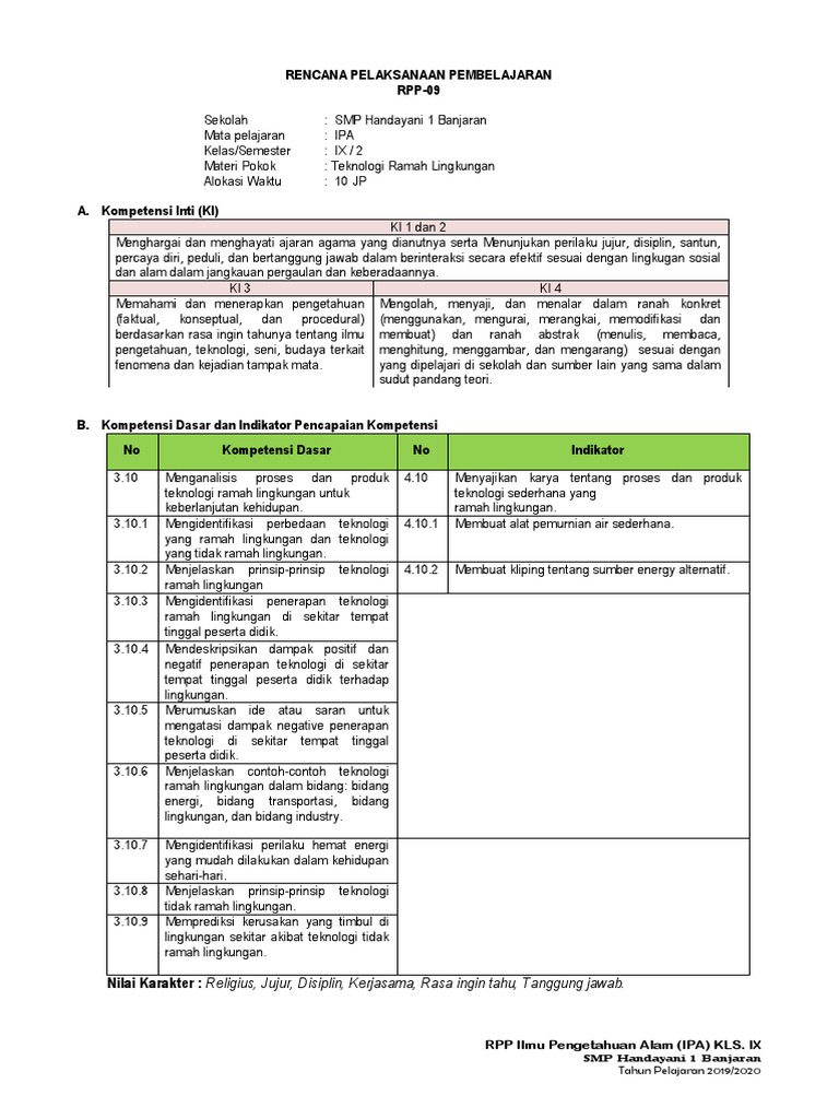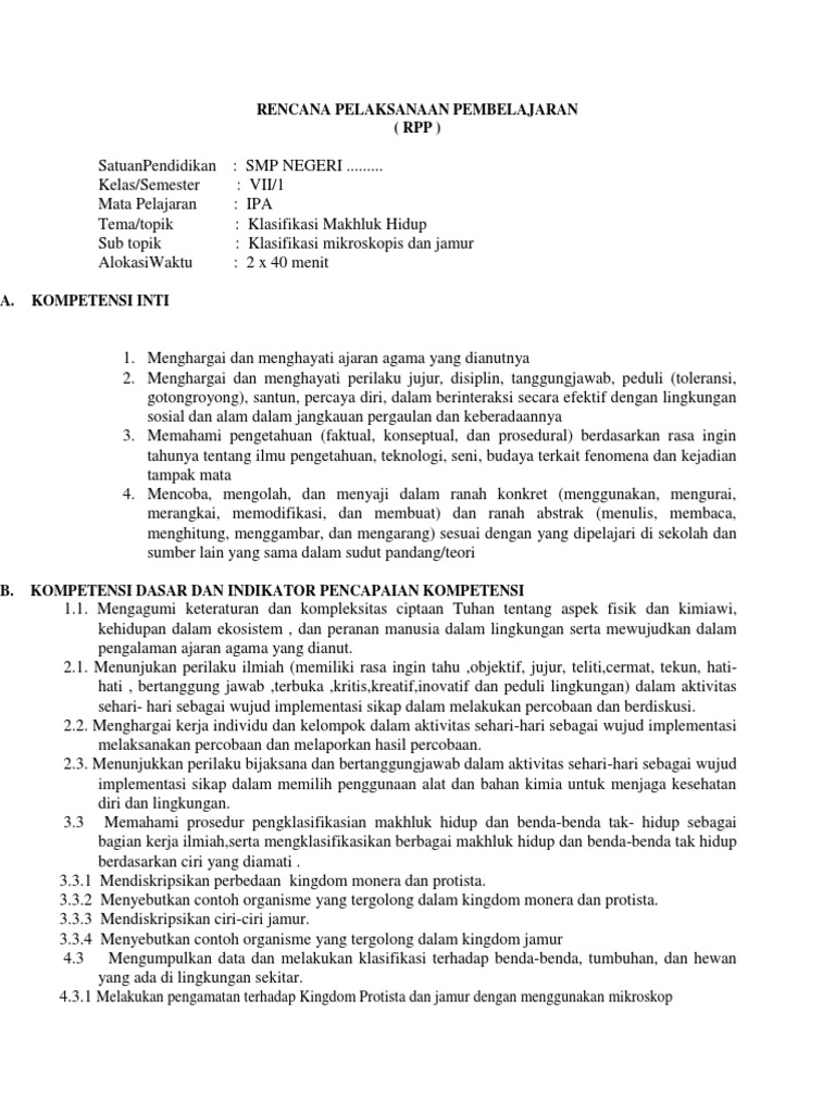Rpp 1 Lembar Ipa Smp Kelas 7 Kurikulum 2013 Revisi 2020 Guru Baik