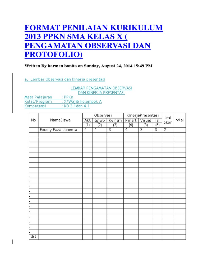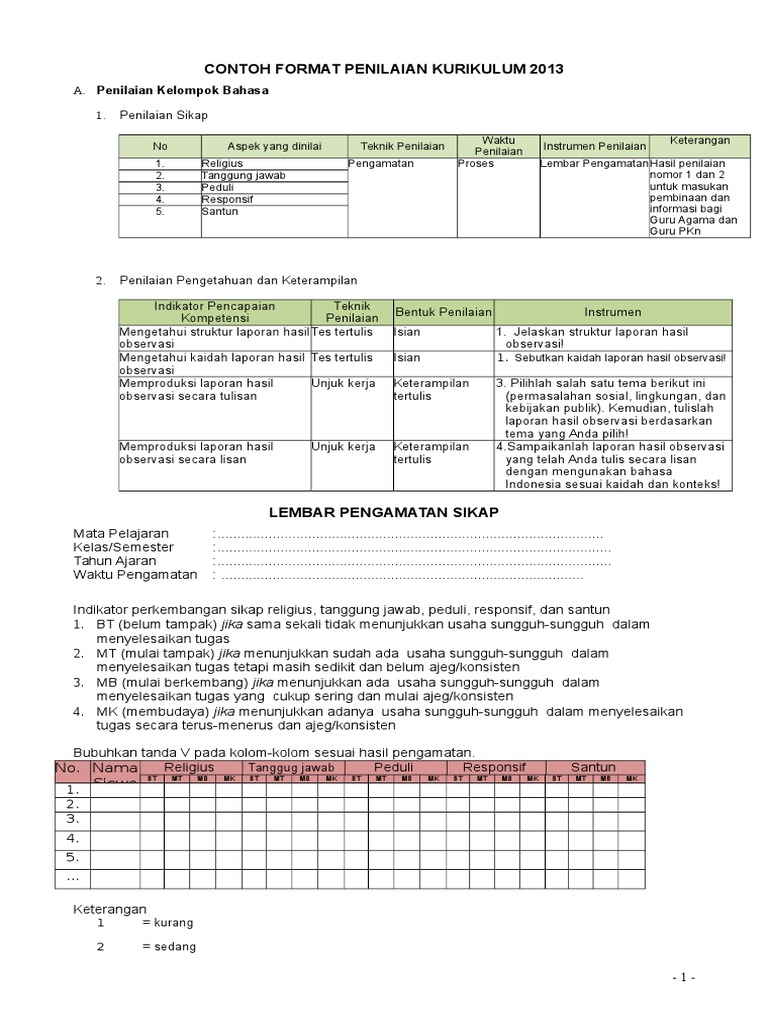Contoh Format Penilaian Kurikulum 2013 Kurtilas Revisi 2020 Mata Pelajaran Pai Dan Bp Untuk Sd Pendidikan