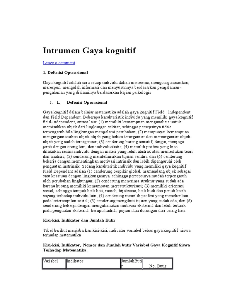 Analisis Deskriptif Gaya Kognitif Field Dependent Field Independent Siswa Sekolah Menengah Pada Pembelajaran Fisika Levels Of Inquiry Model Upi Repository