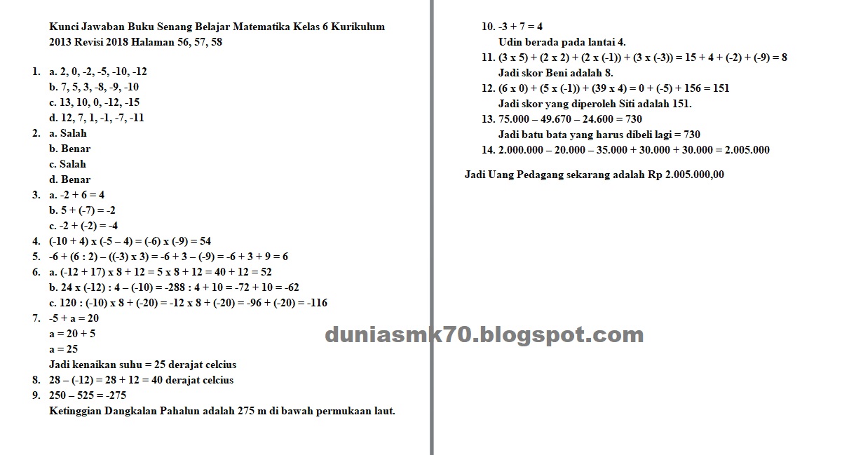 Kunci Jawaban Buku Senang Belajar Matematika Kelas 6 Kurikulum 2013 Revisi 2018 Halaman 193 194 195 196 197 198 Dunia Smk
