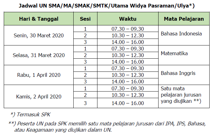 Jadwal Ujian Nasional Unbk Unkp Un Smp Sma Smk Sederajat Tahun 2019 Tahun Pelajaran 2018 2019