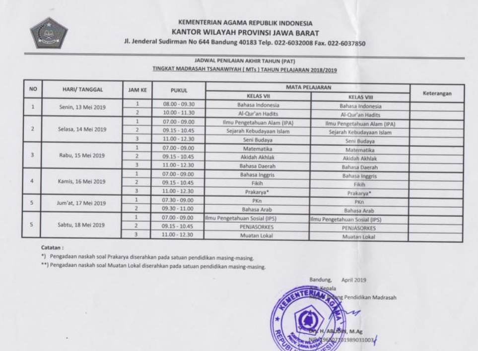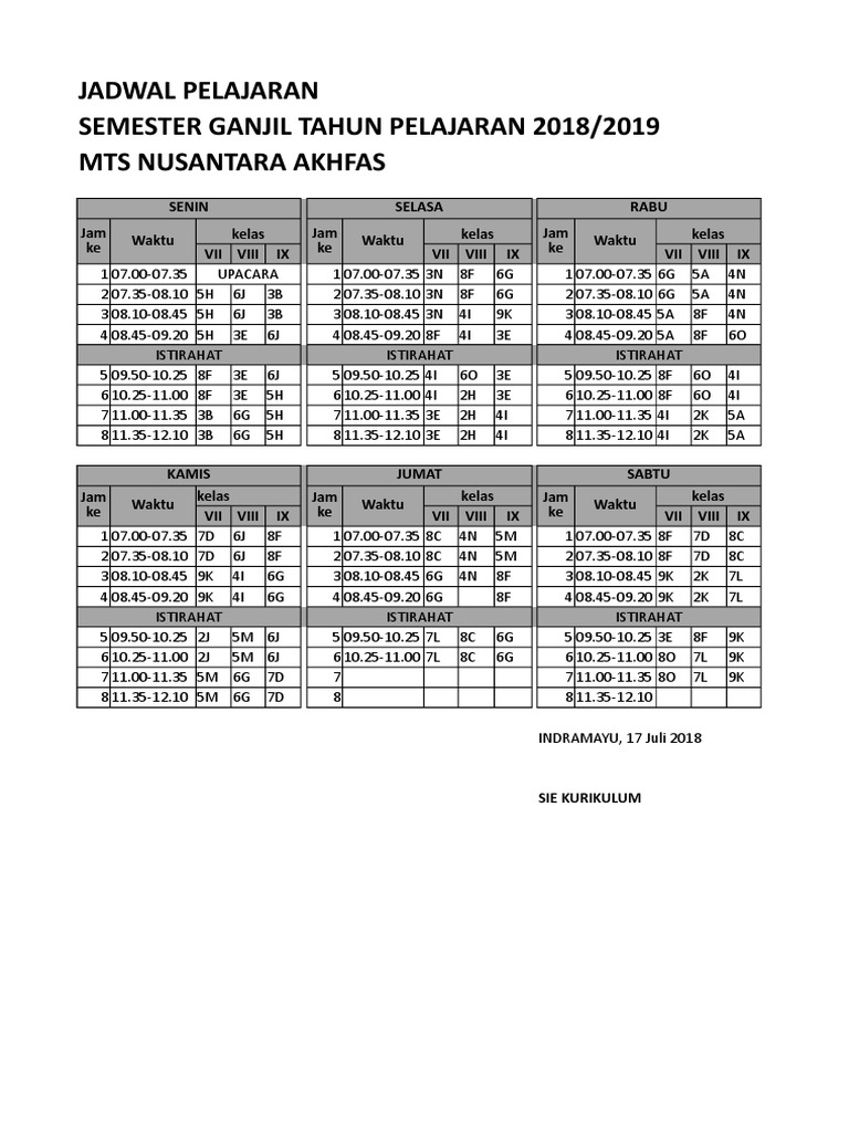 Jadwal Pelajaran Kelas Ix Semester 1 Tahun Pelajaran 2018 2019 Sekolah Santa Clara