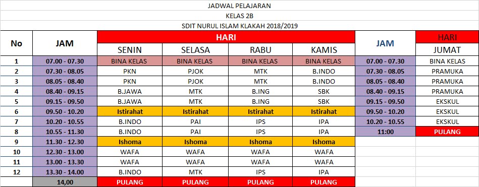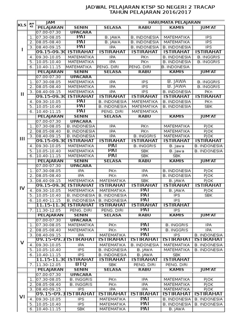 Contoh Jadwal Pelajaran Kurikulum 2013 Sd Tahun Pelajaran 2014 2015 Salam Edukasi