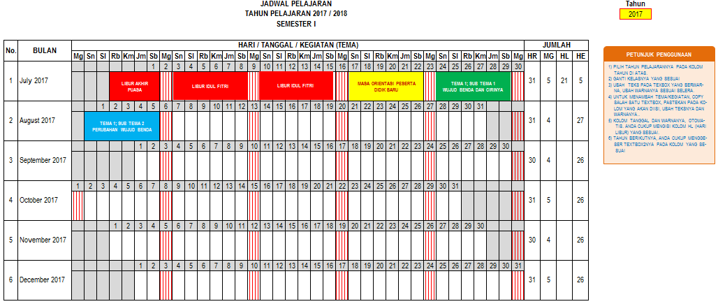 Download Jadwal Pelajaran Tematik Kurikulum 2013 Tahun Pelajaran 2019 2020 Kelas 5 Lima Sd Mi Semester 1 Dan 2 Guru Jumi