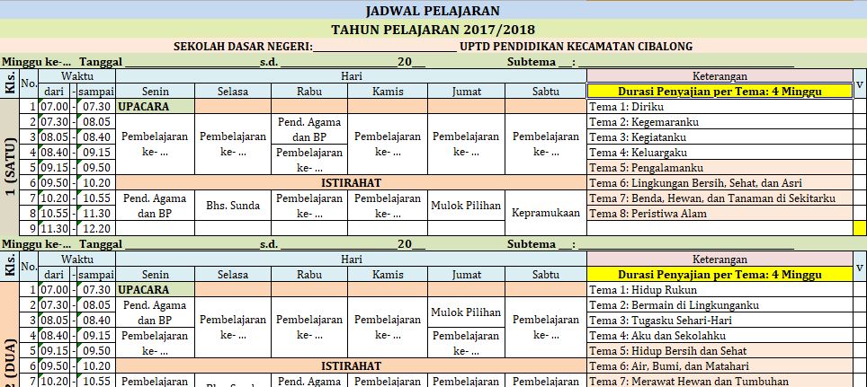 Jadwal Pelajaran Kurikulum 2013 Sd Mi Kelas I Ii Iii Iv V Dan Vi Semester 1 Dan 2 Library Pendidikan