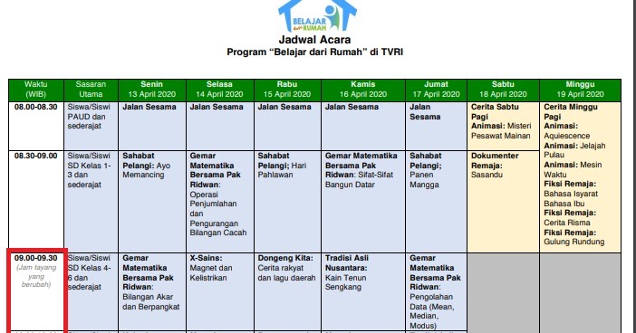 Aplikasi Jadwal Pelajaran Untuk Sd Smp Dan Sma Tahun Pelajaran 2019 2020 Didno76 Com