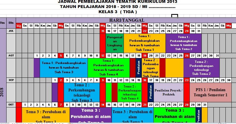 Download Jadwal Pelajaran Tematik Kurikulum 2013 Tahun Pelajaran 2019 2020 Kelas 5 Lima Sd Mi Semester 1 Dan 2 Guru Jumi