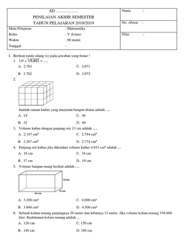 Download Soal Uts Matematika Kelas 5 Sd Semester 2 Genap Dan Kunci Jawaban Bimbel Brilian