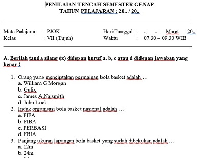 Soal Dan Kunci Jawaban Pas Penjas Smp Kelas 9 Kurikulum 2013 Tahun Pelajaran 2019 2020 Didno76 Com