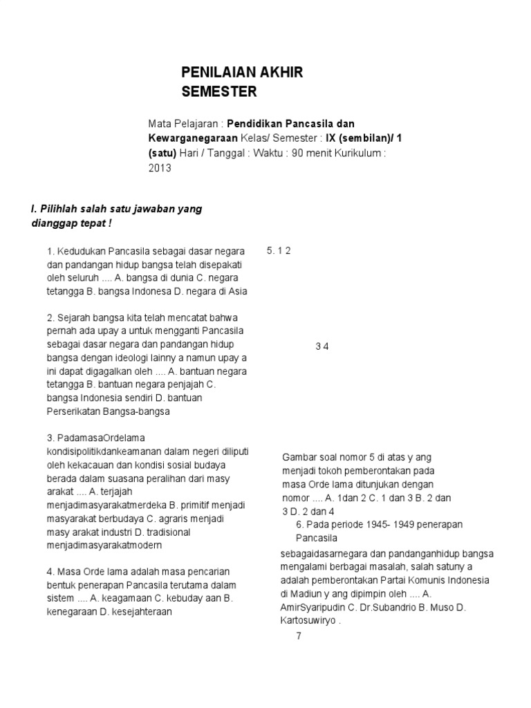 Soal Dan Kunci Jawaban Usbn Ppkn Smp Kurikulum 2013 Tahun Pelajaran 2018 2019 Didno76 Com