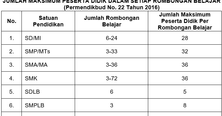 Alokasi Waktu Jam Tatap Muka Pembelajaran Jumlah Rombel Per Satuan Pendidikan Dan Jumlah Maksimum Peserta Didik Dalam Setiap Rombel Salam Edukasi