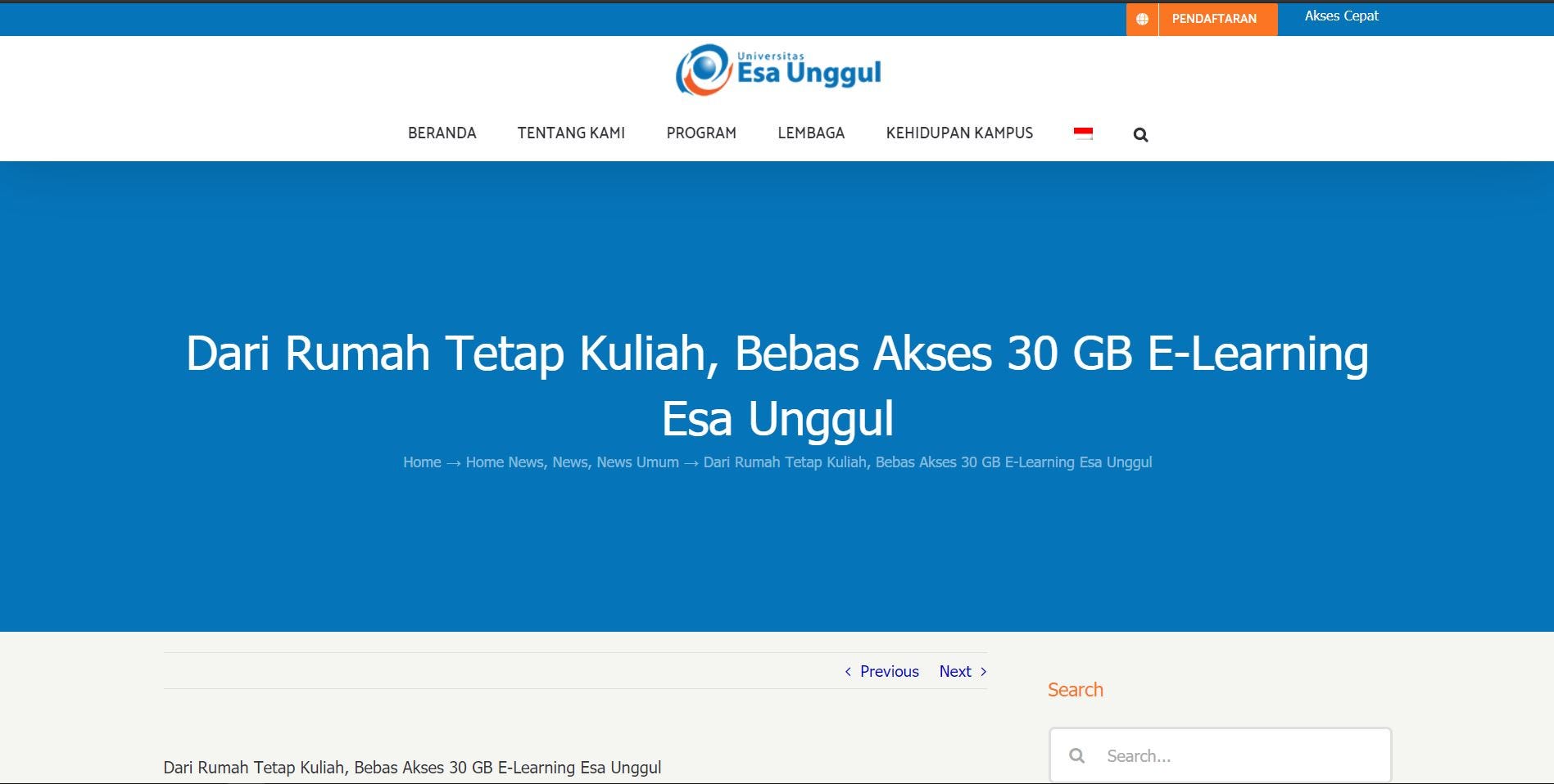 Universitas Esa Unggul Pengumuman Sehubungan Dengan Pencegahan Covid 19 Di Lingkungan Kampus Universitas Esa Unggul Maka Kelas Tatap Muka Diganti Dengan Online Dengan Menggunakan Kelas Ol Esaunggul Ac Id Seluruh Kelas Tatap Muka Sementara Waktu Baik